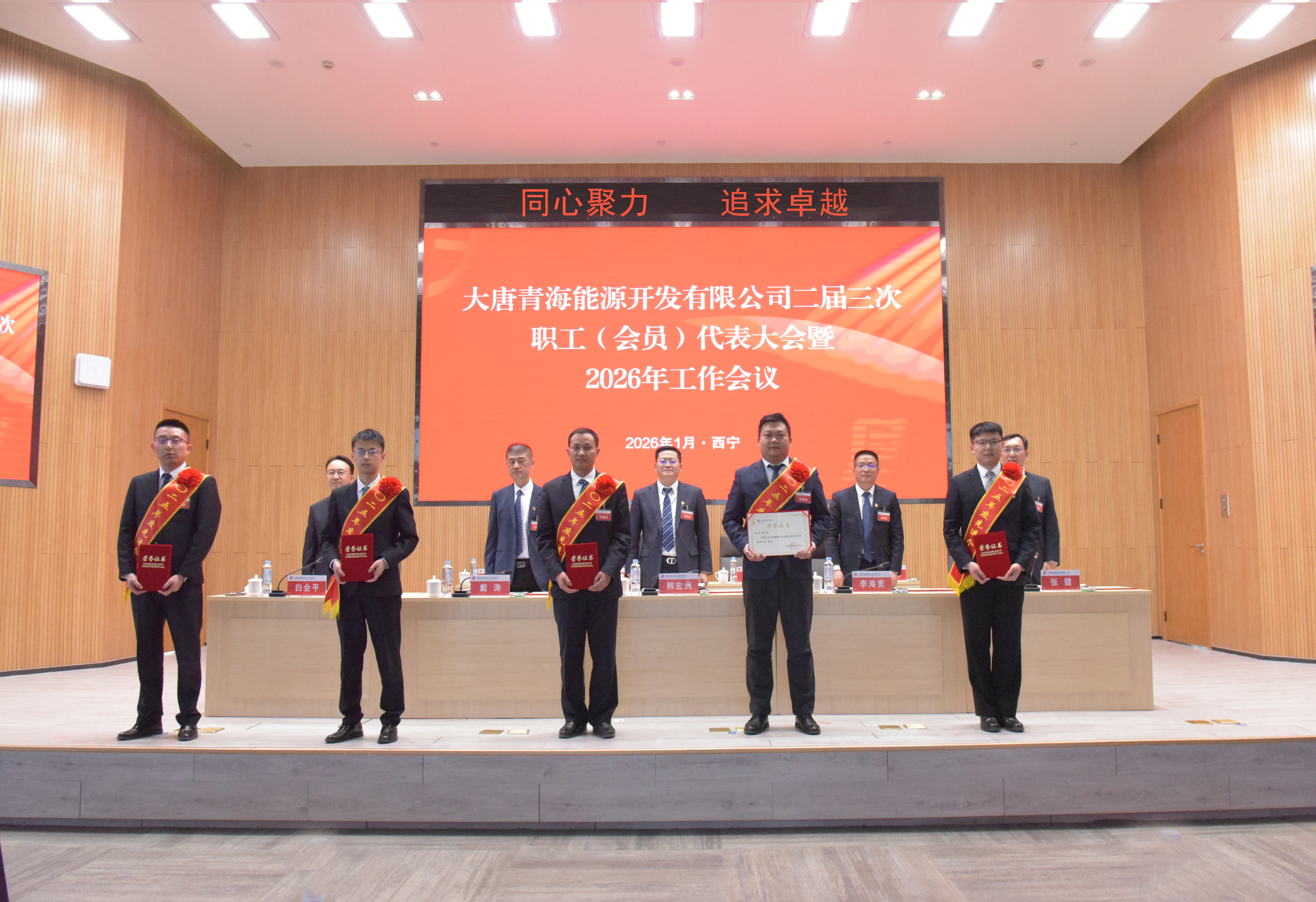 1月22日,大唐青海能源开发有限公司召开二届三次职工(会员)代表大会暨2026年工作会。会议以习近平新时代中国特色社会主义思想为指导,全面贯彻落实党的二十大和二十届历次全会、中央经济工作会议精神,深入学习贯彻习近平总书记对中央企业工作作出的重要指示精神及中央企业负责人会议要求,认真落实集团公司2026年工作会议部署,系统总结2025年及“十四五”工作成效,分析当前面临的形势,谋划“十五五”发展蓝图,部署2026年重点工作任务。