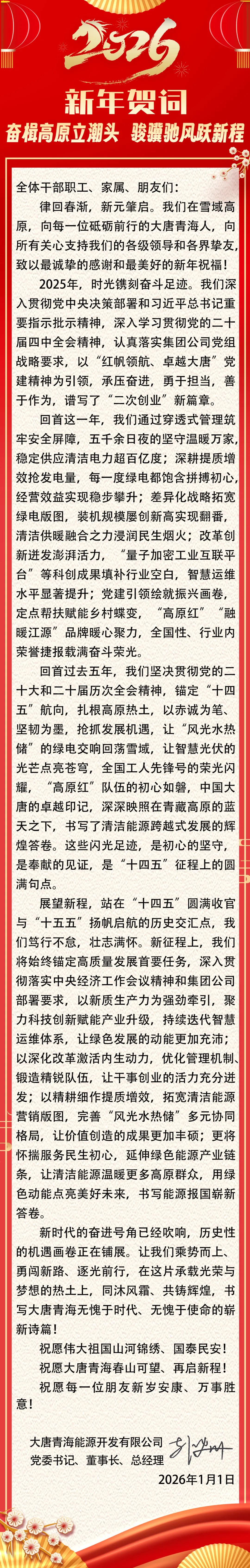 大唐青海公司2026新年贺词 | 奋楫高原立潮头,骏骥驰风跃新程