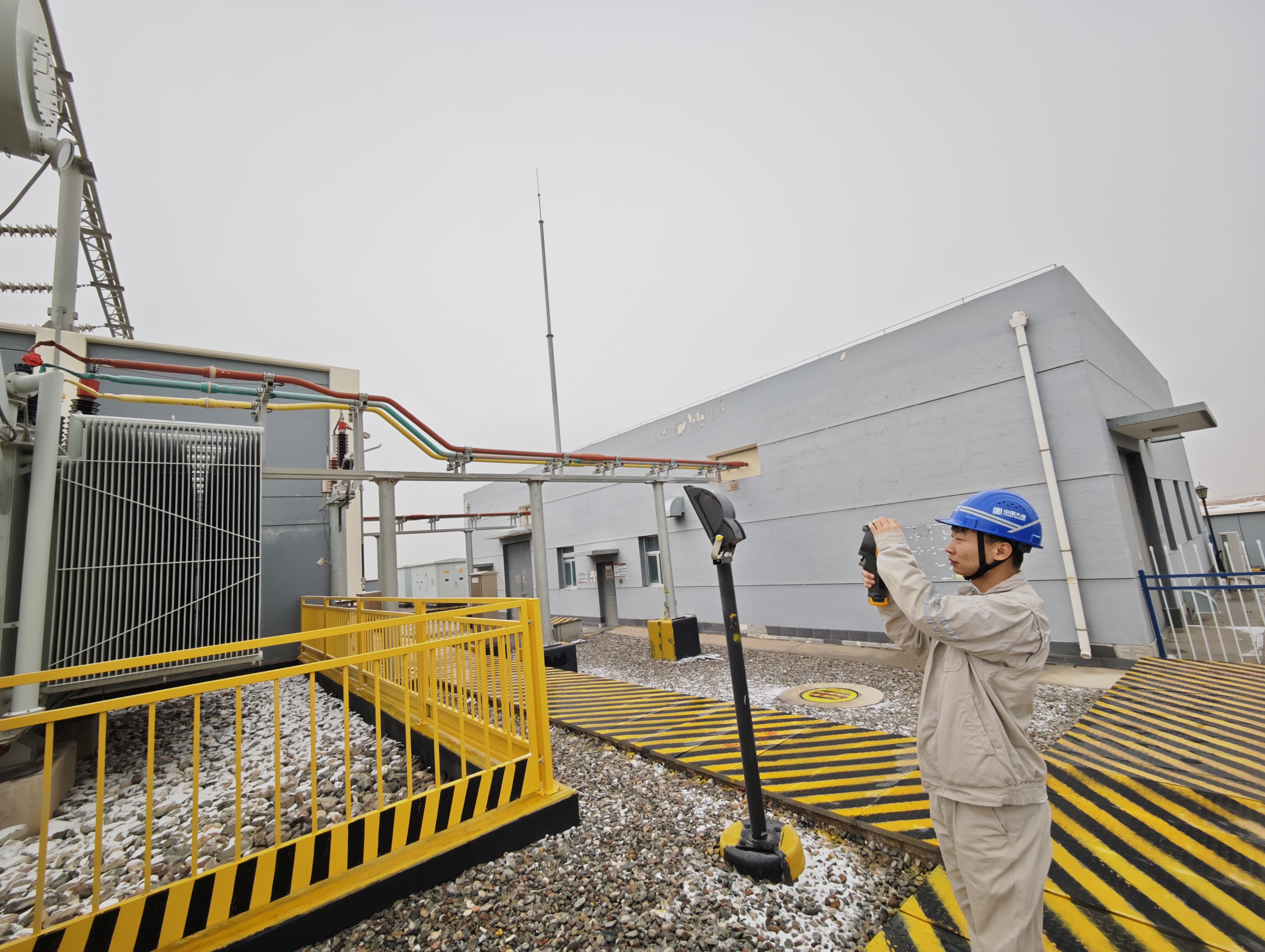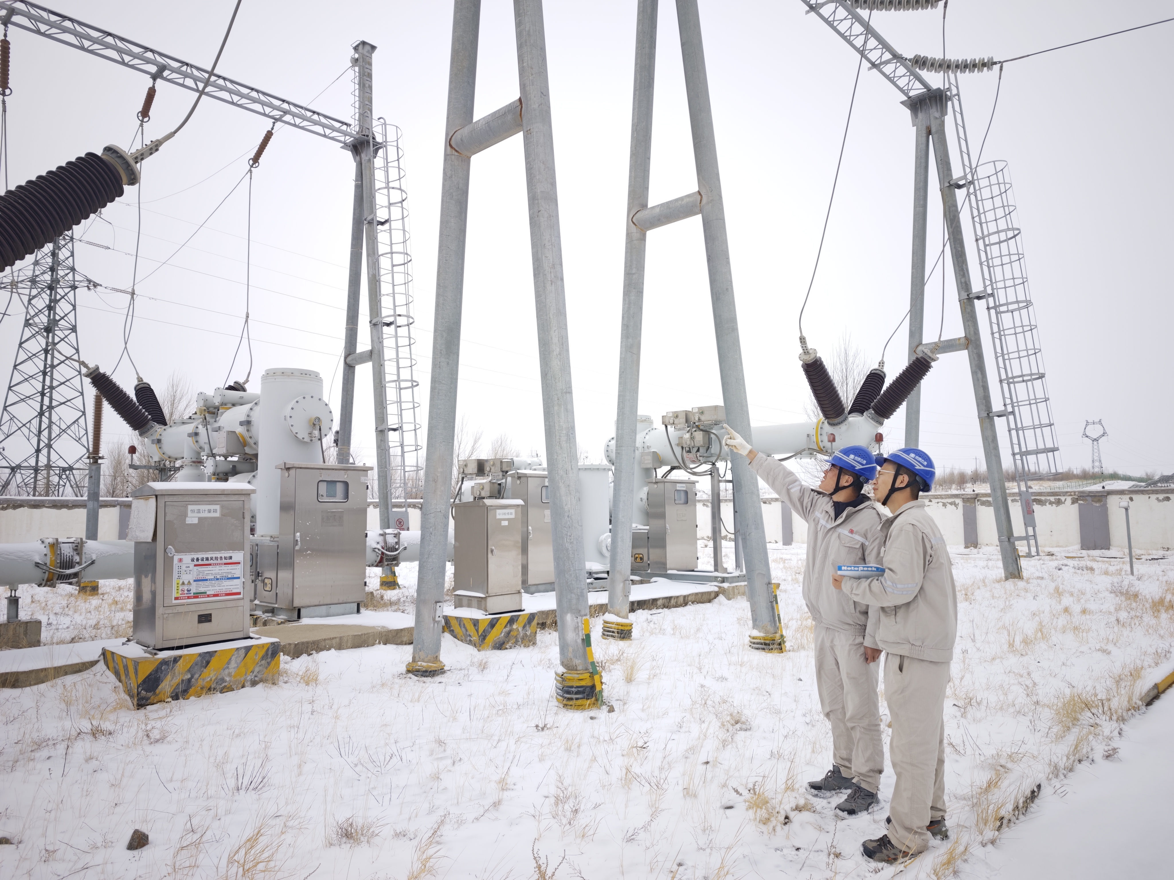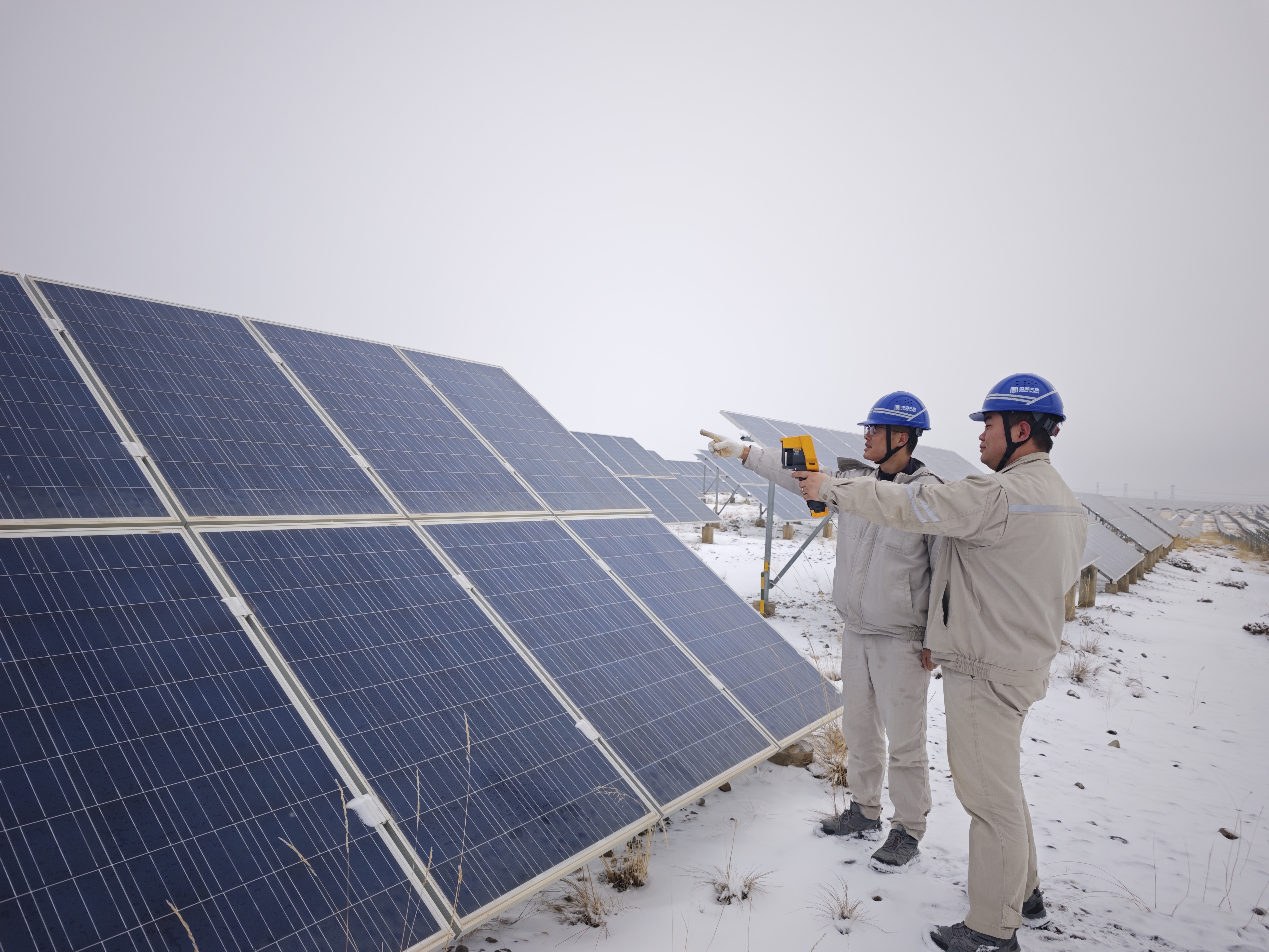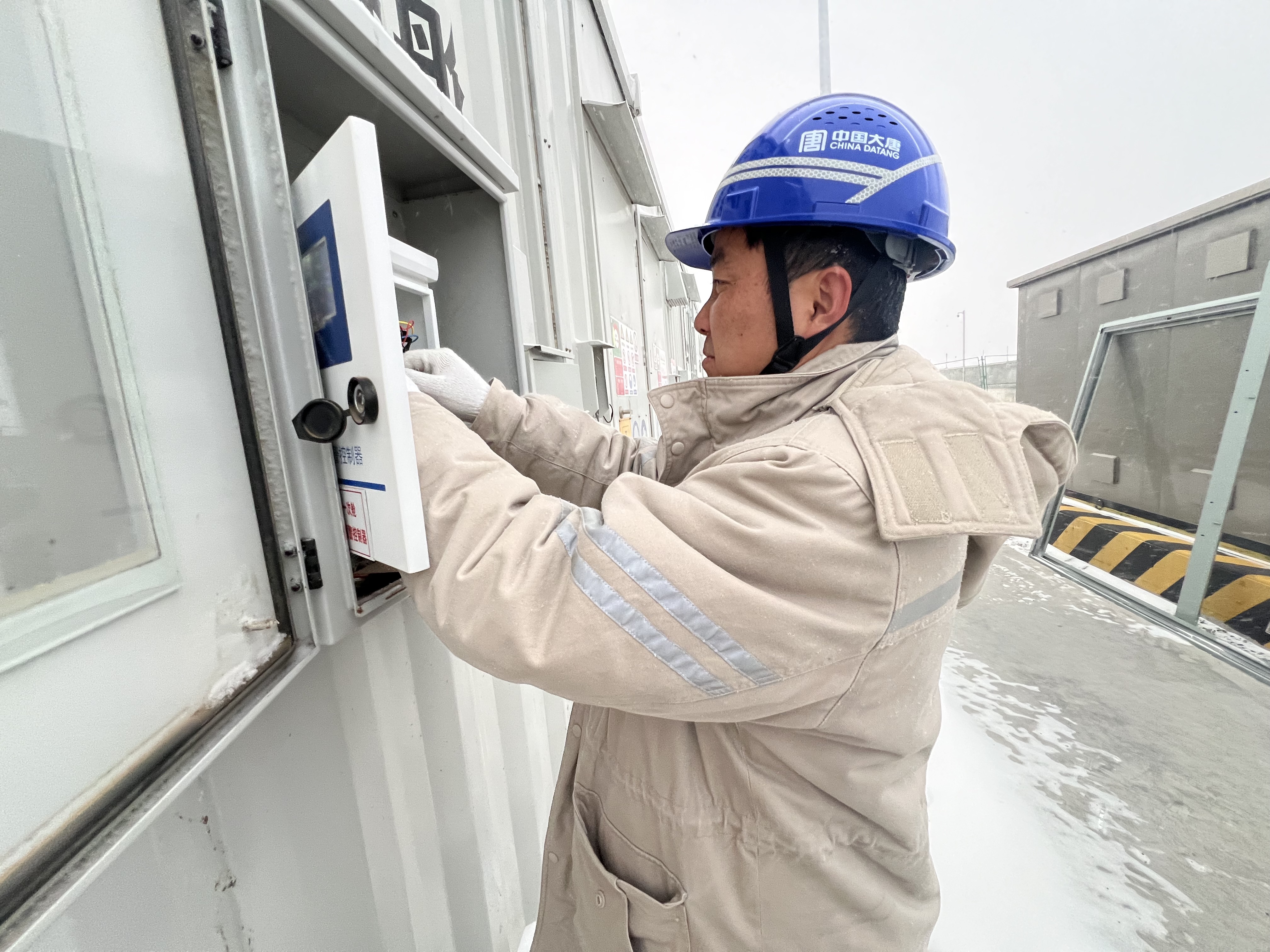 光伏电站职工顶着雪给逆变器“体检”