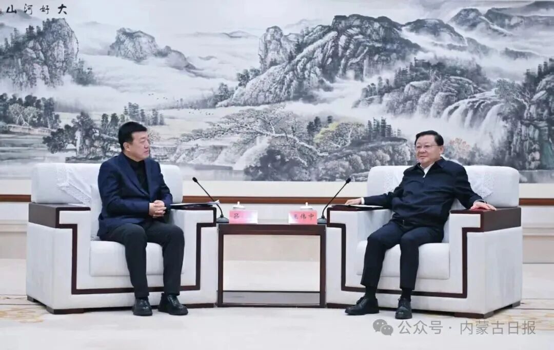 12月19日,中国大唐集团有限公司党组书记、董事长吕军,董事、总经理、党组副书记李向良在呼和浩特拜会内蒙古自治区党委书记王伟中,自治区党委副书记、自治区人民政府主席包钢。