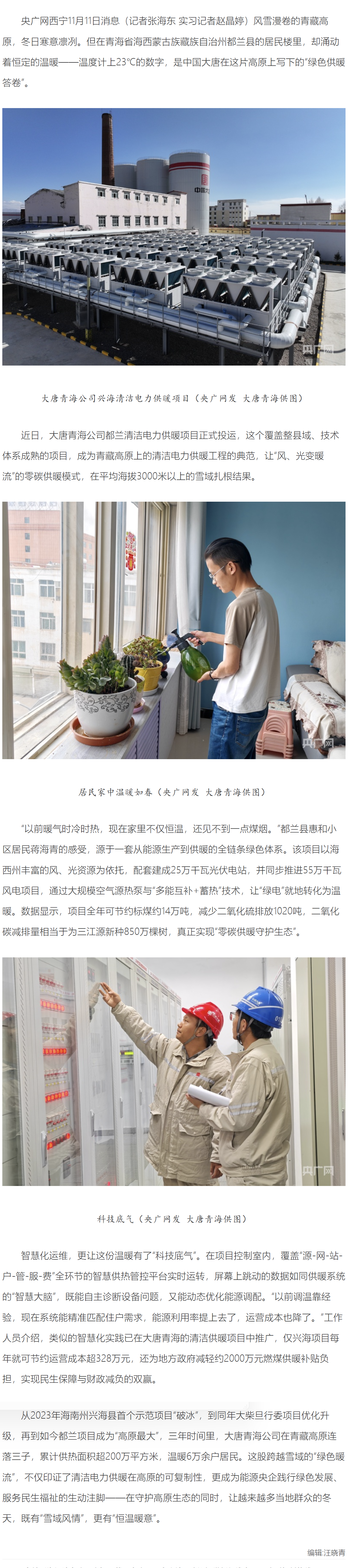 【央广网】大唐青海公司在青藏高原书写“绿色供暖答卷”