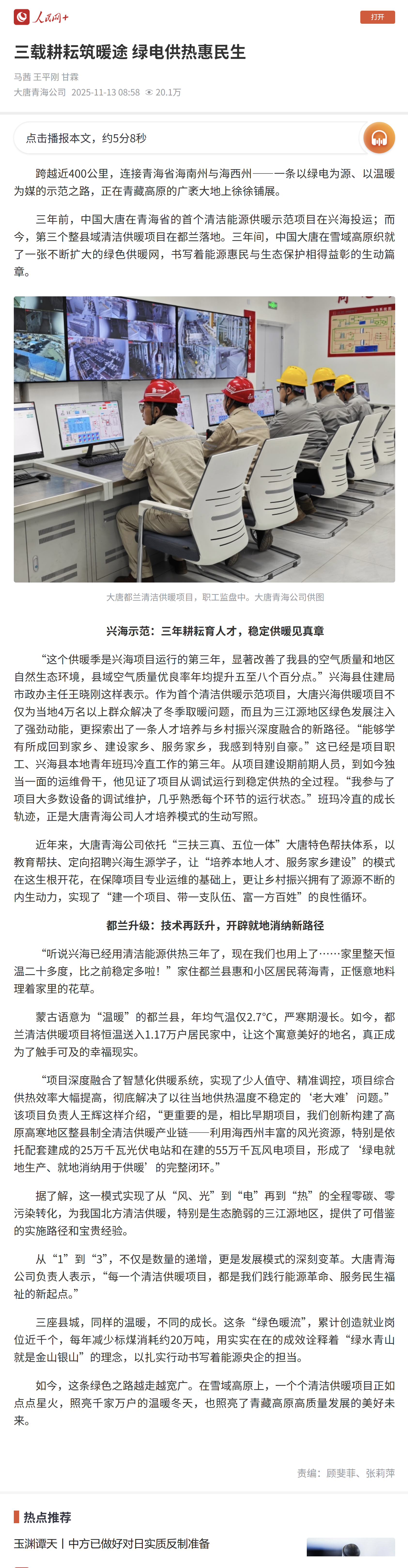【人民网】三载耕耘筑暖途 绿电供热惠民生