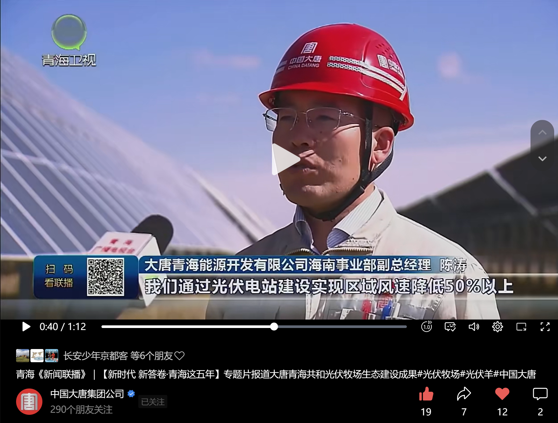 【集团视频号】青海《新闻联播》| 【新时代 新答卷·青海这五年】专题片报道大唐共和光伏牧场生态建设成果
