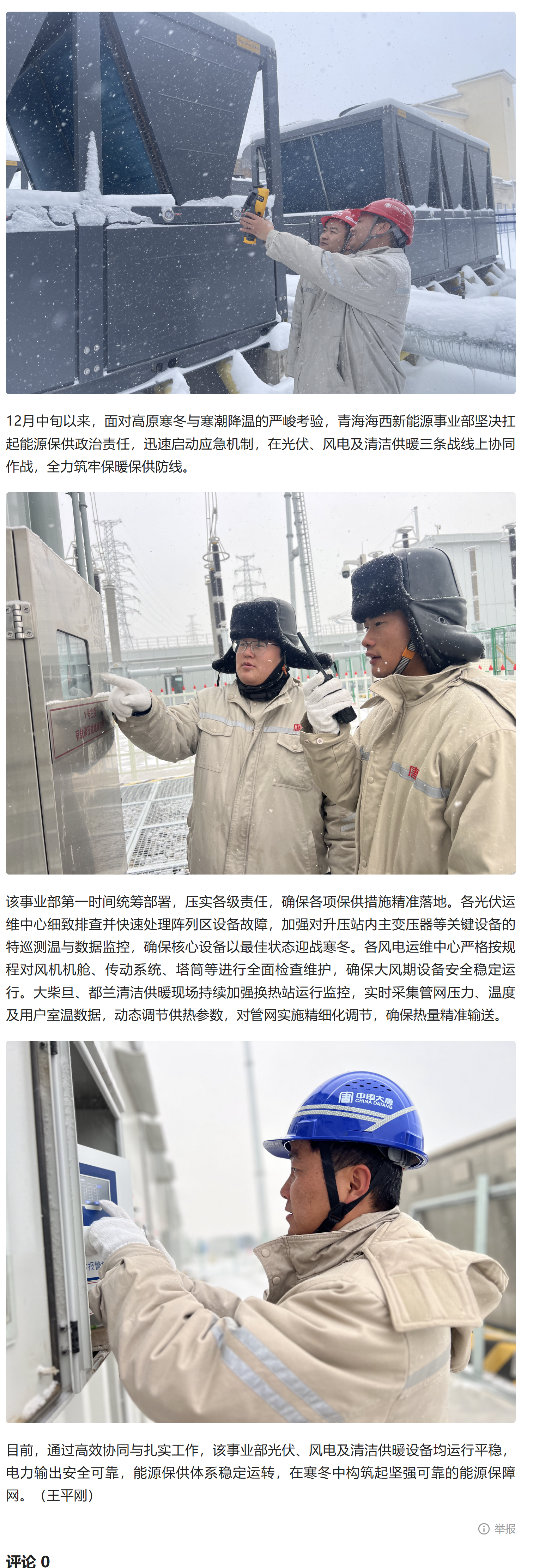 【集团今日头条】闻“寒”而动!青海海西新能源事业部风雪中守护万家“温度”