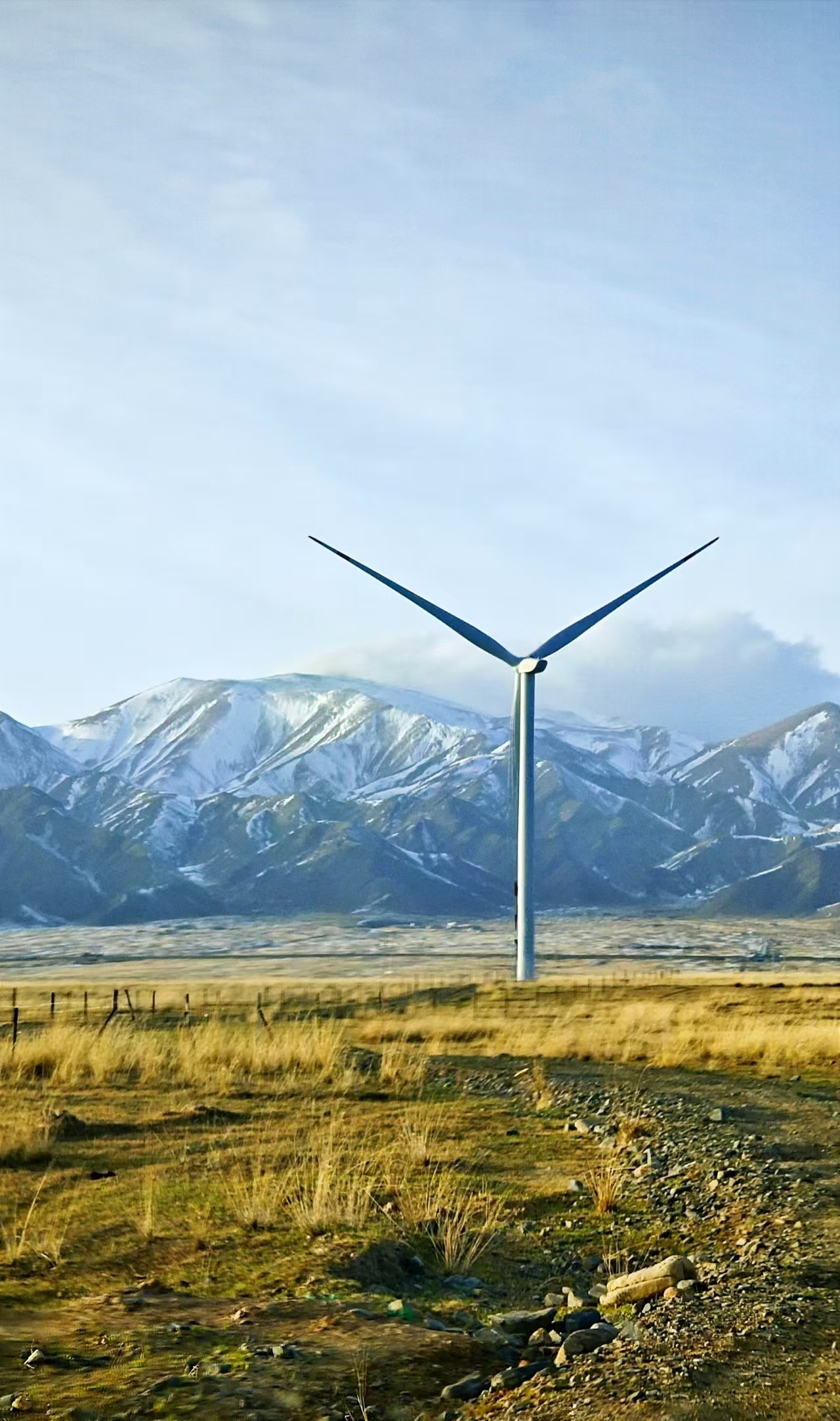 远方,雪山连绵,像一道凝固了的、青白色的波浪,它是沉默的,是亘古的旁观者。而风机,则是此刻天地间唯一的“动”,是自然之力与人类心智共同雕琢的、活着的丰碑,将这苍黄与雪白构成的寂寥天地,点化成了一个充满无形能量的、圣洁的场域。