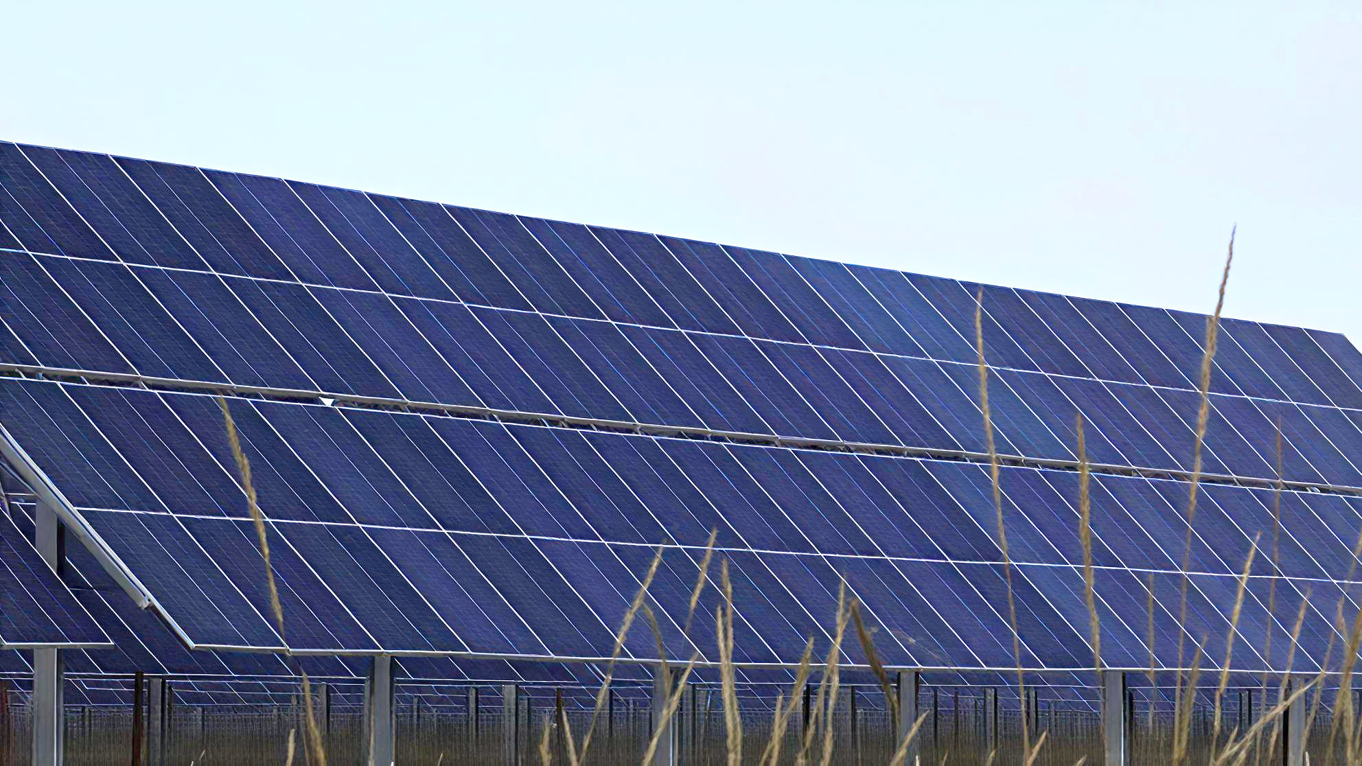 光伏板连绵成的、凝固的海洋,一种崭新的、近乎非自然的靛蓝,被冬天的光线洗得发冷,又隐隐透着金属的质感。