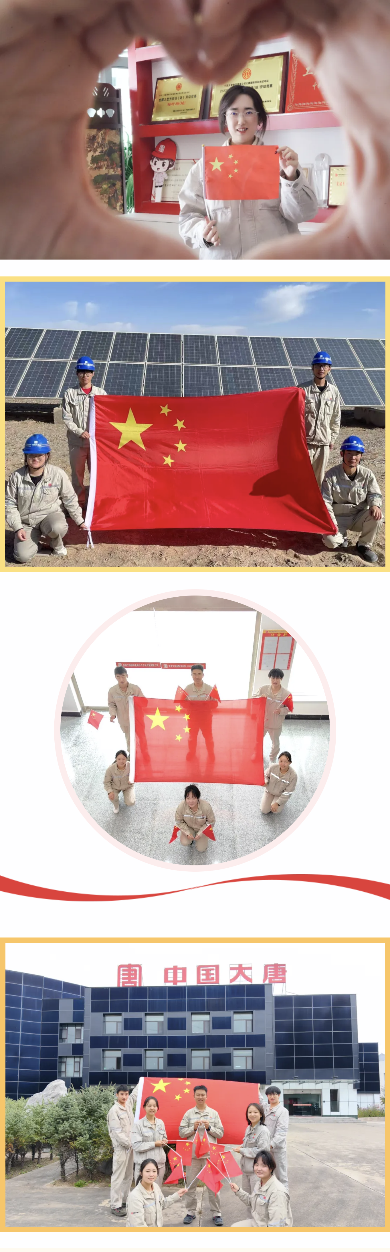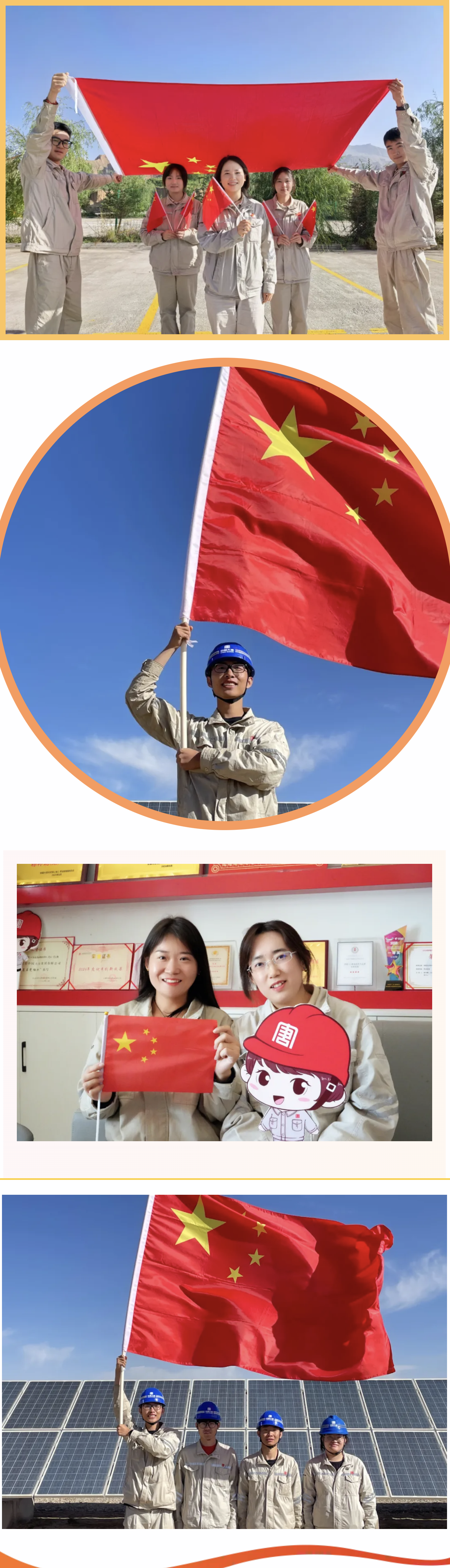 在生产一线,大家寻找最美背景,庄重地与鲜艳的五星红旗同框。