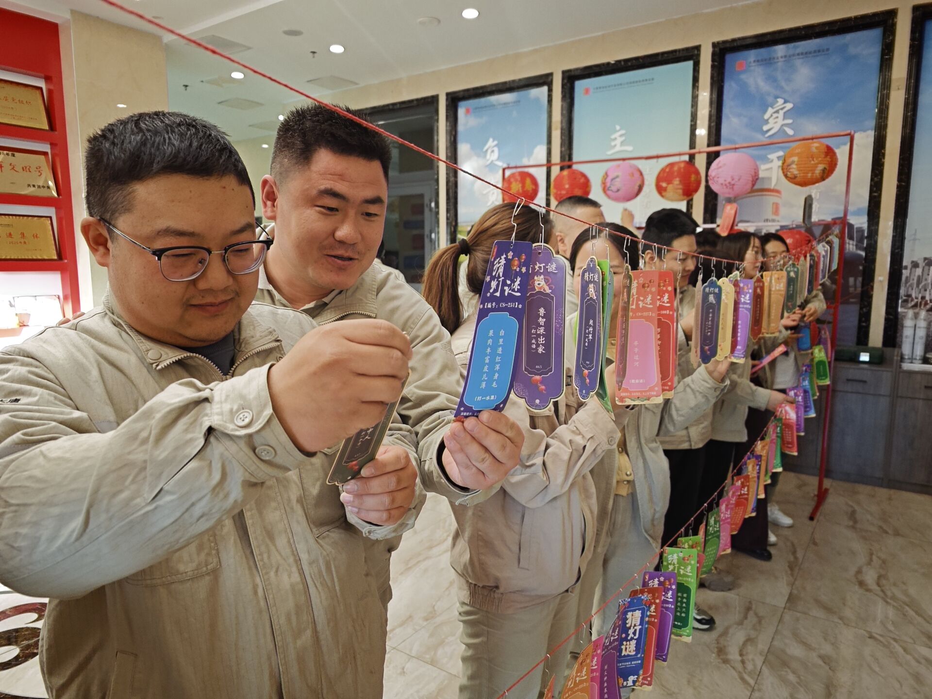 活动现场,五彩斑斓的谜条随风轻舞,百余条灯谜巧妙融合了传统文化、安全生产与生活常识,既有知识性,又趣味横生。大家在益智竞猜中感受着骏马奔腾的奋进力量,在协作互动中传递着团圆温馨的节日暖意。