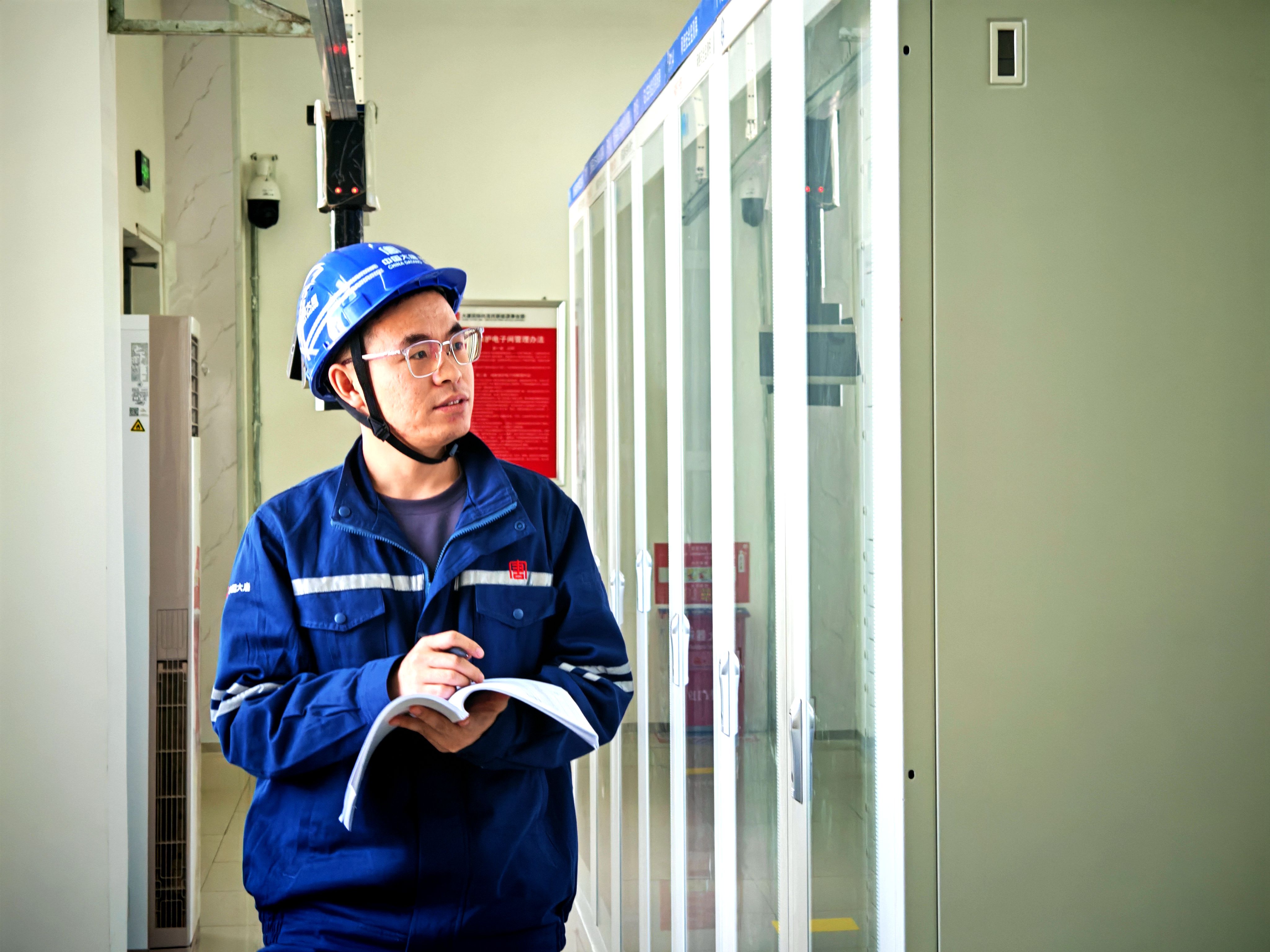 从火电控制室的仪表盘前,到风场百米高空的风机控制面板旁,他凭借勇气和专业热爱,成功实现从传统火电到新能源领域的“跨界转身”。他埋头苦干、刻苦钻研,2025年先后获得“大唐国际技术能手”“集团公司技术能手”以及“电力行业技术能手”称号,从“初学者”蜕变为独当一面的“技能骨干”。他就是托克托发电公司新能源事业部运维中心技术员——谢磊。