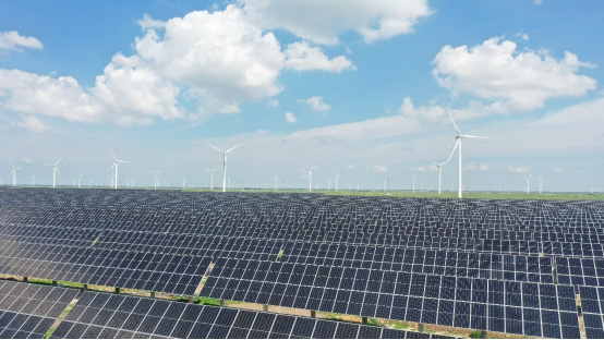 该一体化项目位于吉林省洮南市向阳乡及二龙乡境内,总容量115万千瓦,其中风电两期项目容量100万千瓦,共439台风电机组于2021年底发电。本次并网的光伏项目建设在风电场风能缓冲隔离带,容量15万千瓦,共6532组单晶硅太阳能电池阵列,进一步优化了能源空间布局,实现风光同场、共建共投,协调发展。