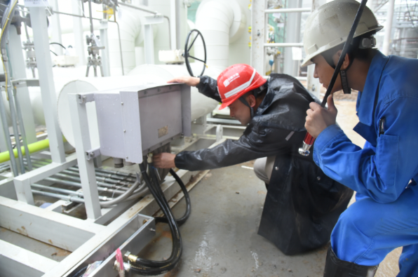 大唐佛山热电公司工程部汇同施工单位检查室外电源箱防水情况