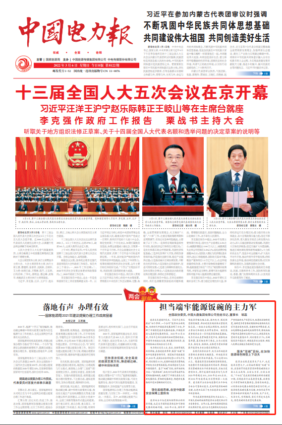 作为我国重要的能源电力企业之一,中国大唐始终把保障能源安全稳定供应作为首要责任。去年以来,面对电煤供需阶段性失衡的矛盾,我们全力克服煤电发电成本严重倒挂的生产经营压力,统筹抓好迎峰度夏、迎峰度冬等重要时期保供电保供热及北京冬奥会保电任务,关键时刻冲锋在前,充分发挥煤电基础和兜底保障作用,煤电机组开备率在高峰时达到97%以上;新能源发电量创历史最高水平,同比增长27.7%,为确保经济平稳运行、确保能源安全保供、确保人民群众温暖过冬提供有力支撑。