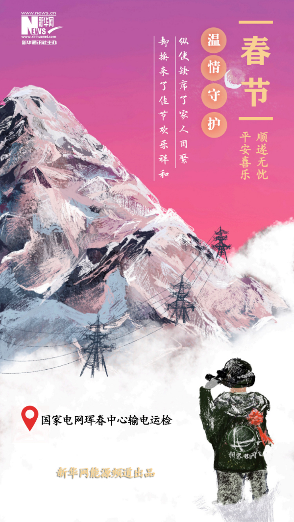 电力工人在新春佳节凛寒巡检,