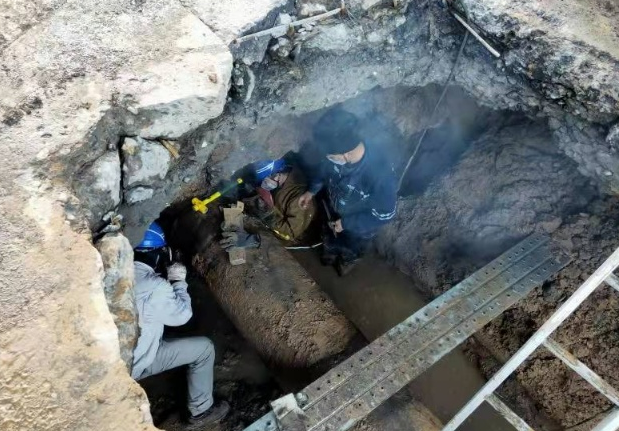 2021年12月30日上午,灞桥热电厂职工认真检查唐都医院供热管道。“我们制定了供热应急保障方案,分区域、分管段巡线。根据气温变化,及时调节供热参数,保证供出水温提高5℃,确保居民及医院抗疫热力充足稳定。”该厂供热服务中心负责人曹睿说。