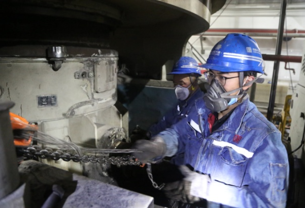 2021年12月25日,大唐韩城第二发电公司党员突击队精心检修设备,助力抗疫保供。曹军科 摄