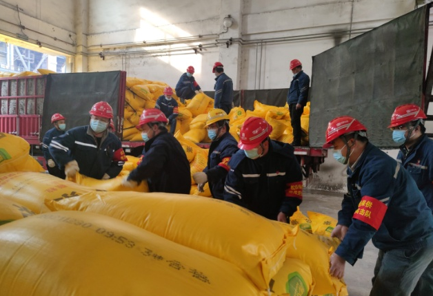 1月2日,因疫情影响,在装卸工进不了厂的情况下,大唐灞桥热电厂党员突击队,齐心协力接卸尿素,保证生产万无一失。胡文静 摄