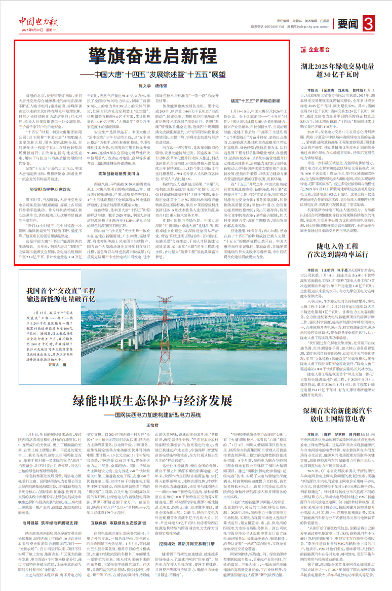 [中国电力报]2026-1-19-3擎旗奋进启新程 ——中国大唐“十四五”发展综述暨“十五五”展望